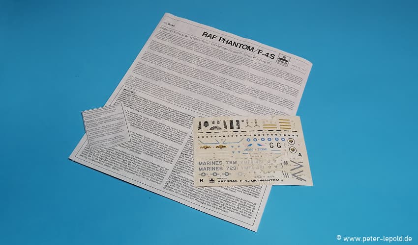 RAF Phantom/F-4S McDonnell Douglas F-4J(UK)/F-4S Phantom #9045 aus 1986 (Erste Auflage 1982 als F-4E/F-4F #9027) Neue bzw. geänderte Bauteile sowie neue Decals Maßstab 1:72, 98 Teile
