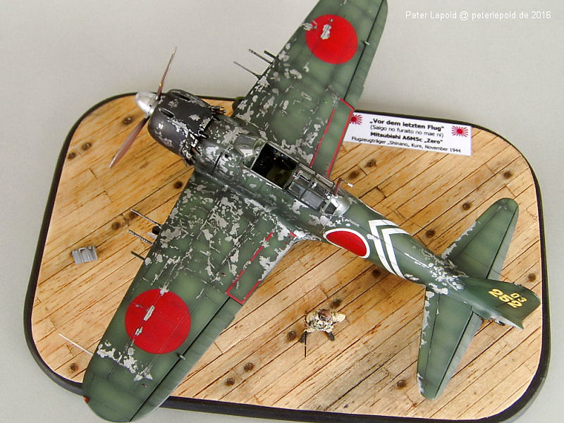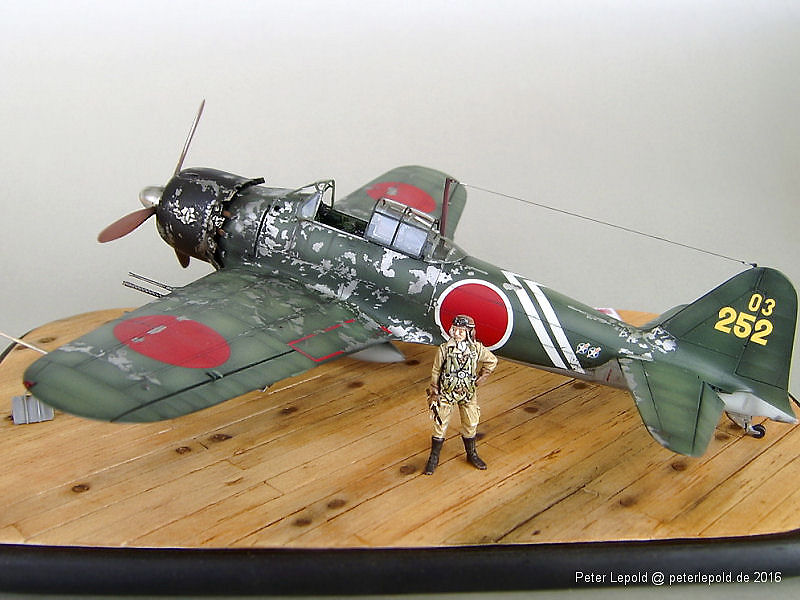 ...A6M5c Zero (1:48), Flugzeugträger "Shinano", November 1944. Auch aus dem alten Tamiya Bausatz von 1983 kann man mit etwas Arbeit ein wirklich gutes Modell herausholen.