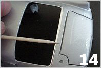 Scheibenrahmen. Dann wird mit dem Wattestäbchen die "BMF" komplett und