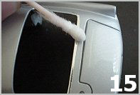 Wattestäbchen an die Karosserieoberfläche anreiben, damit keine abstehende