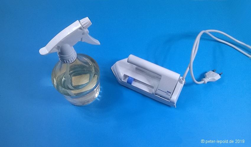 Wassernebel versprüht und ein Bügeleisen. Ich verwende ein kleines