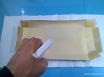 gebügelt, falte ich sie wieder entsprechend und verklebe die Laschen.