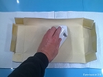 eingestellten Bügeleisen mit der Innenseite beginnend den Karton glatt