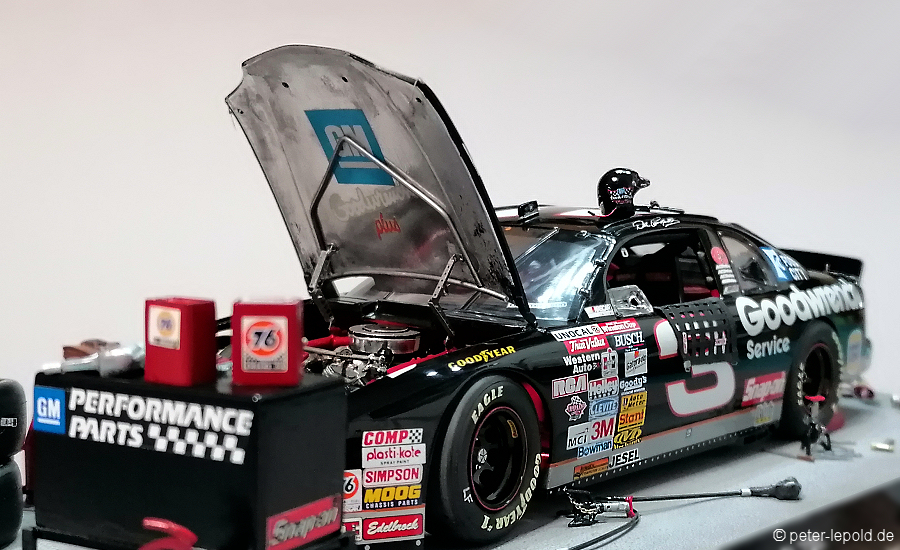 1977 Chevrolet Monte Carlo (Revell, Maßstab 1:25) Rookie of the Year (1979) und 1. Meisterschaft's Wagen (1980). Kompletter Umbau aus Serienversion zum Rennwagen.