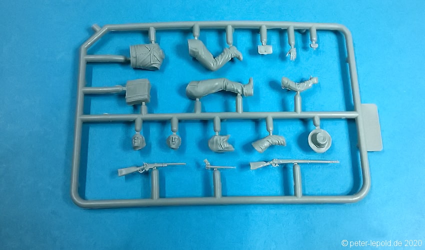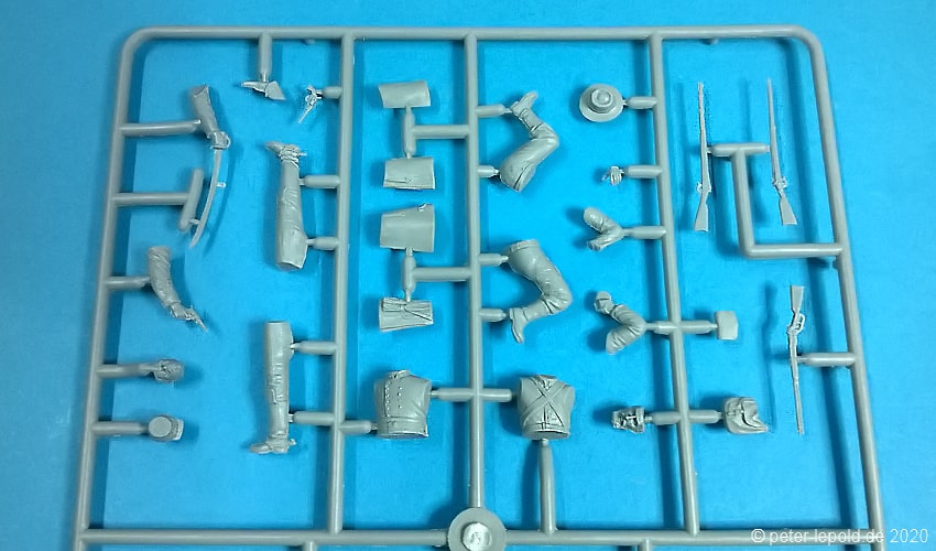 Der Inhalt: Enthalten sind zwei Spritzlinge für fünf Figuren der Konföderierten