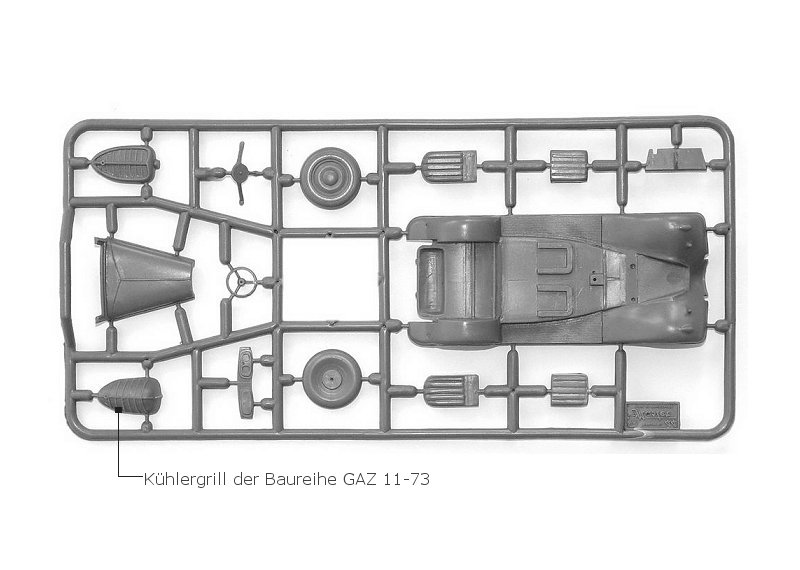 Im Bausatz ist auch ein Kühlergrill enthalten, durch den man das Modell GAZ