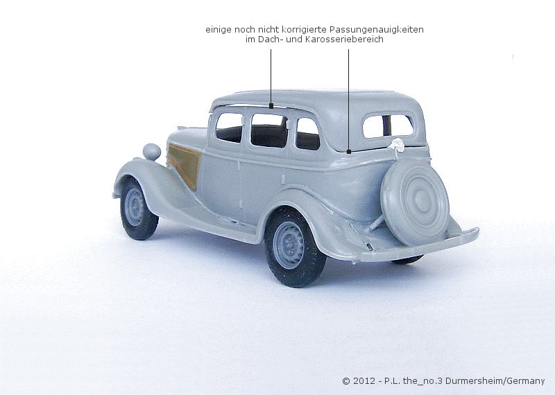 Zu bemängeln ist die angesprochene Qualität der Teile, einem Tamiya Bausatz in