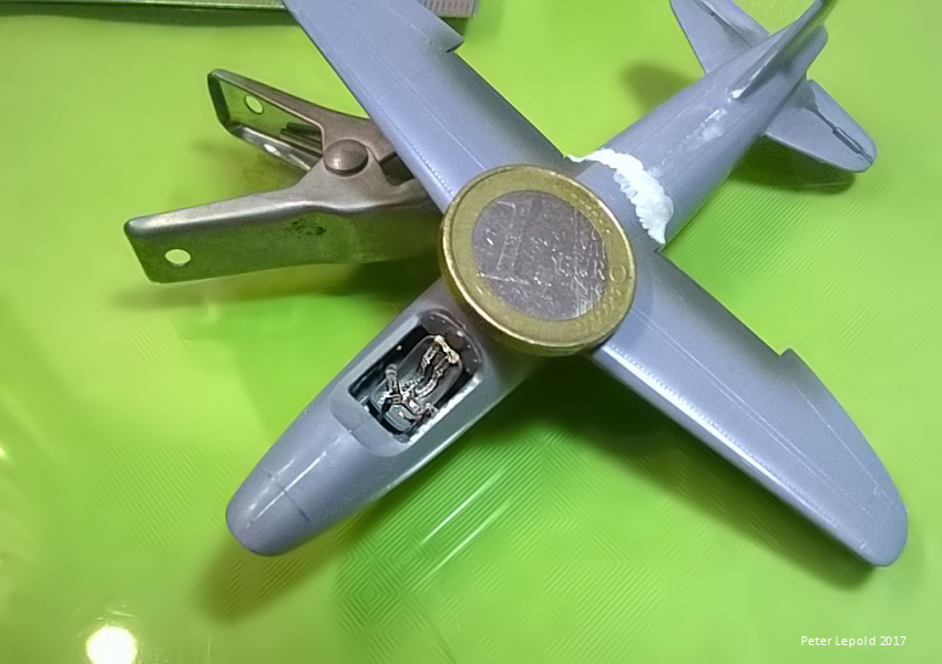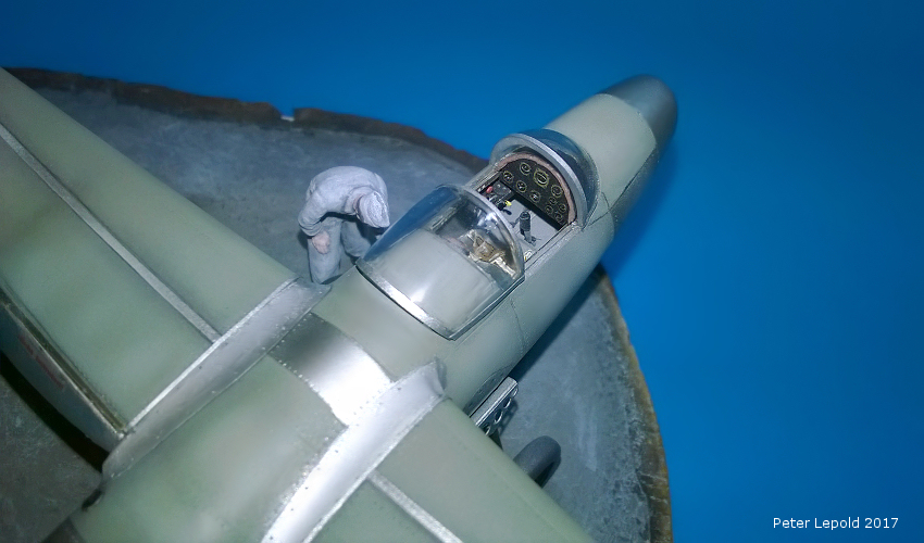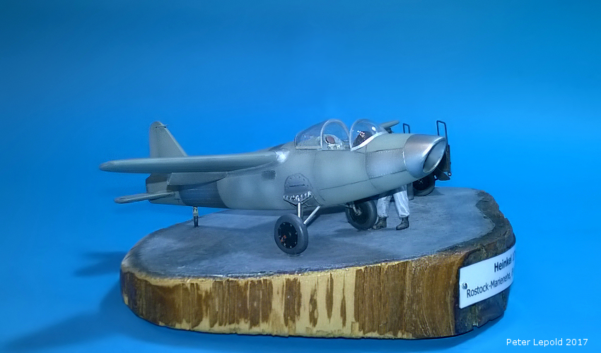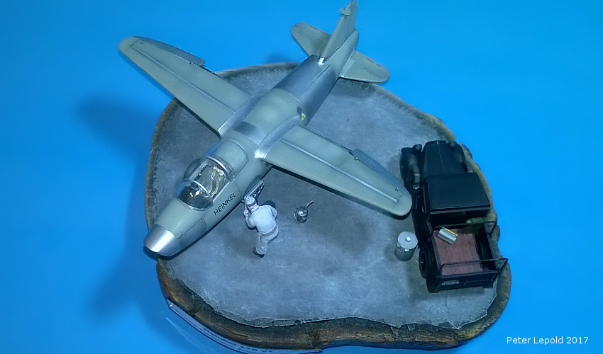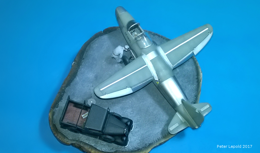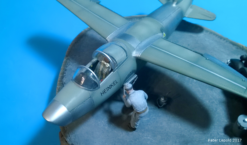 komplett neu aufgebaut. Lackiert wurde die Heinkel in RLM02 mittels Revell