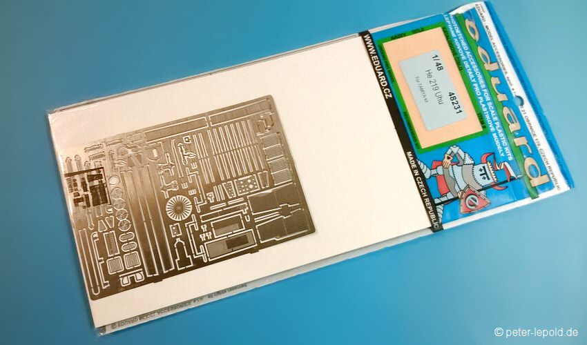 Ob ich dieses Modell und das Zubehör jemals (ver)bauen werde ist klar mit Nein zu beantworten. Aber...es gibt einen Hobbykollegen, der seine Tamiya 1:48 Heinkel 219 mit großem Aufwand und jede Menge Zubehör (vieles hier gezeigte davon) baute: Masterpiece by Ricardo Abad ''Chicho''