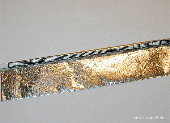 Metal Folie so zuschneiden, dass sie zum einen etwas länger ist an den Enden und