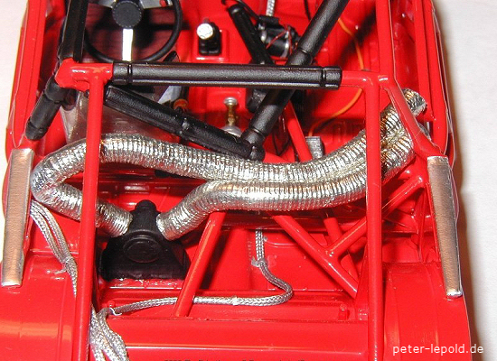 Hier sieht man zwei Schläuche im Innenraum meines NASCAR Modells verlegt. Man