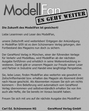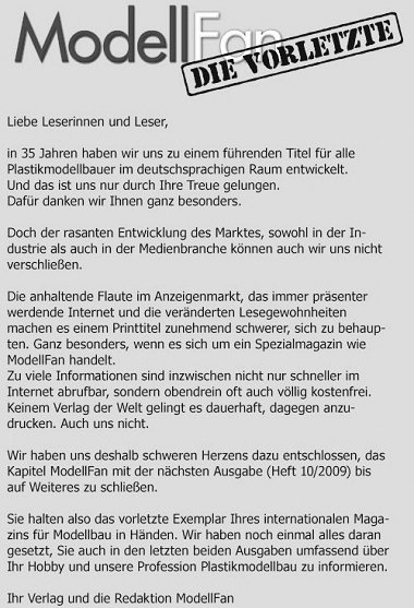Die offizielle (gelbe) Begründung über das Ende von ModellFan lasse ich mal so