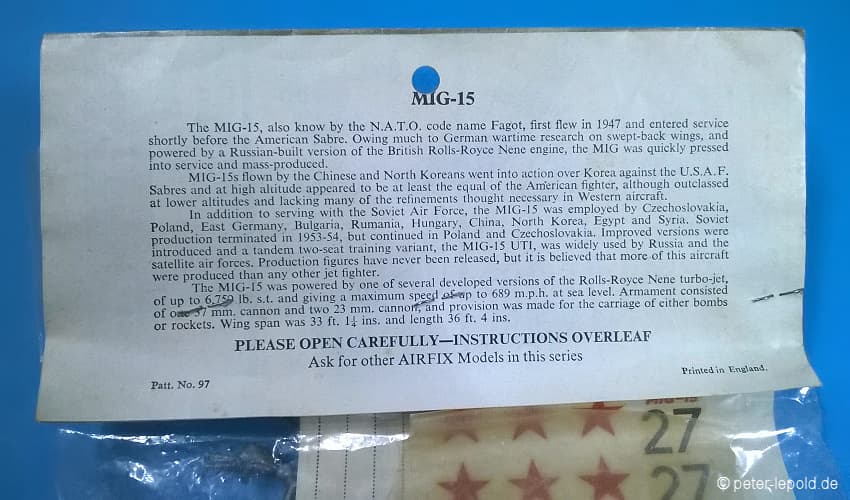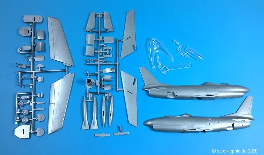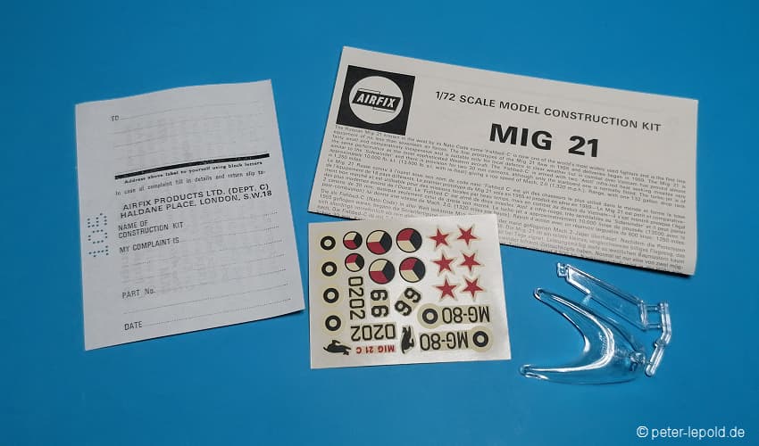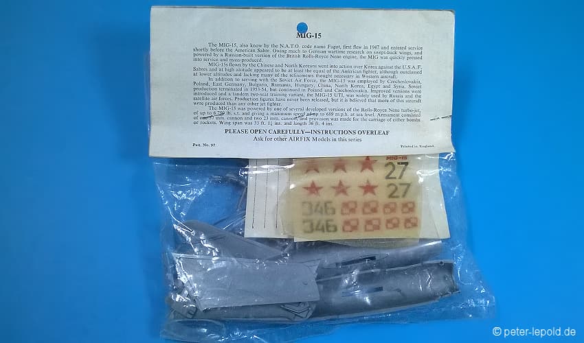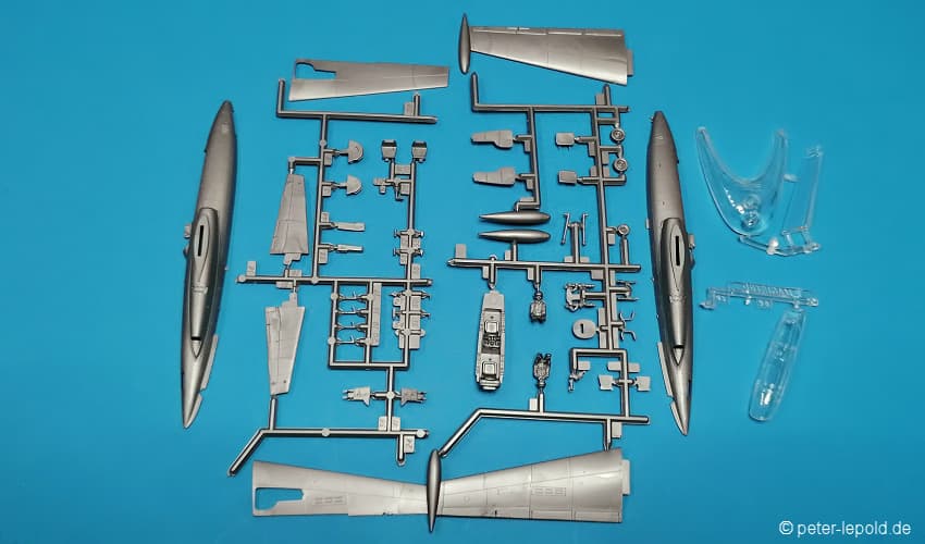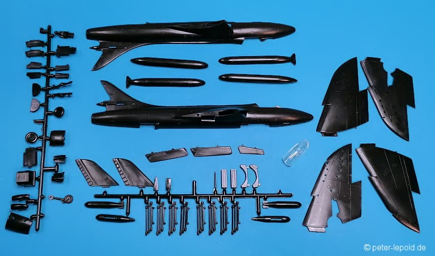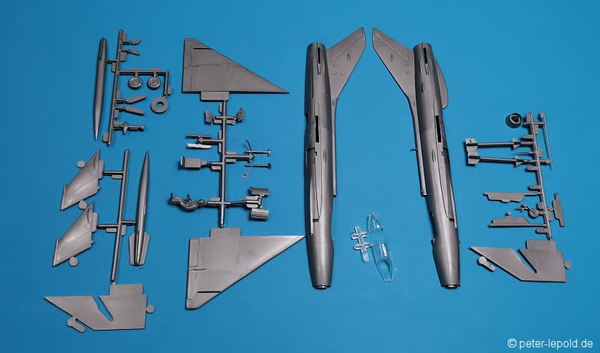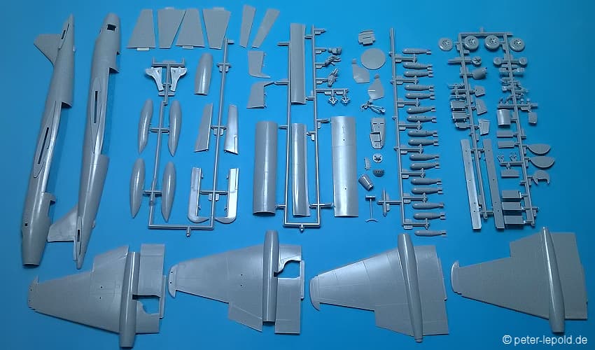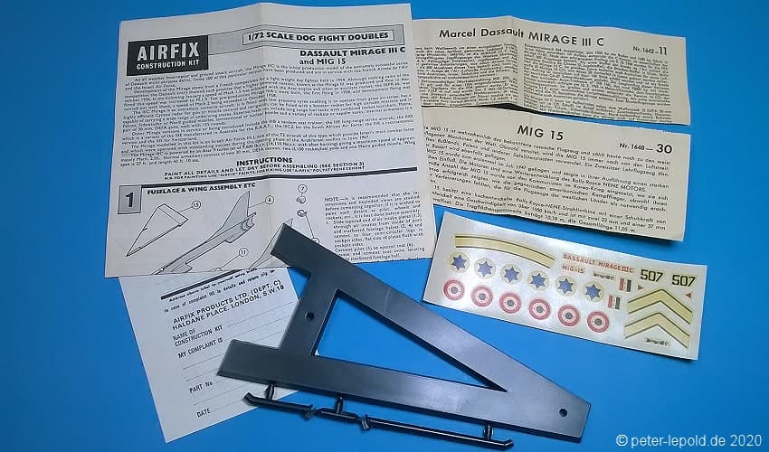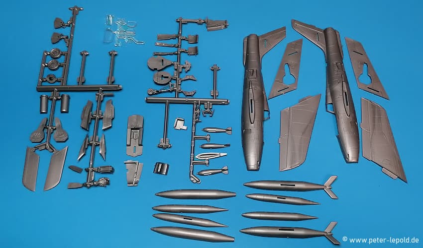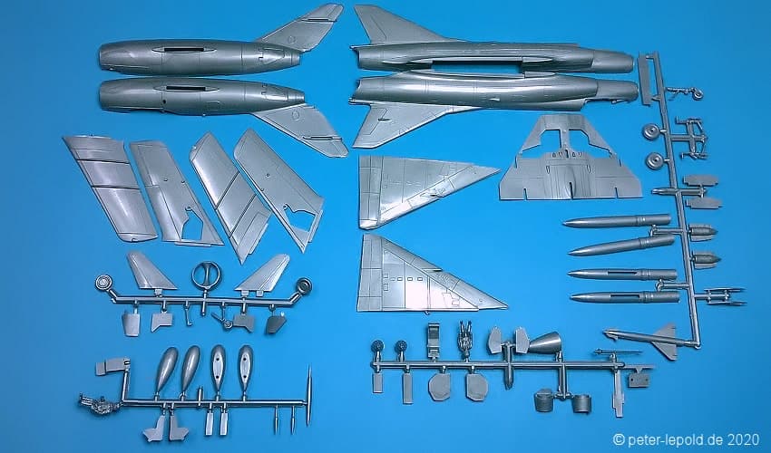 69 Teile (39 Teile für Mirage und 30 Teile für MiG 15)
