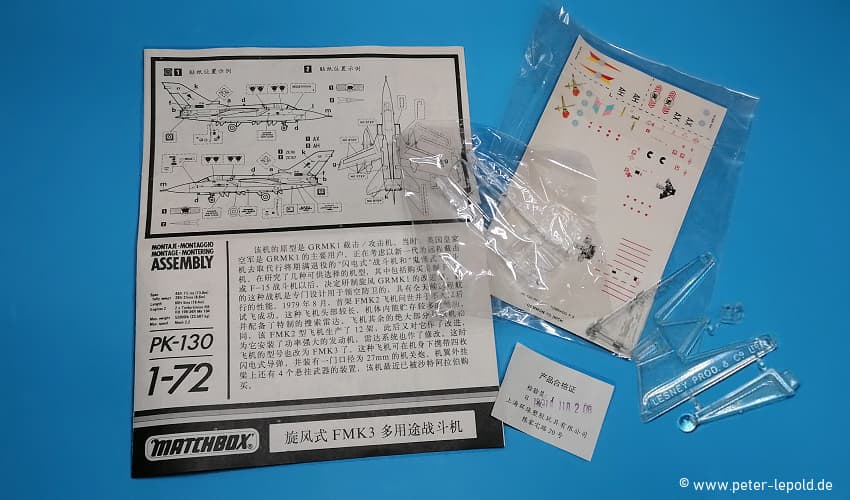 Diese erste Ausgabe der ersten Auflage beinhaltet die seltenen falsch gedruckten Decals mit der RAF Nummer "XV895" des No. 6 Squadron. Diese Nummer gab es nicht, es sollte bzw. musste "XT895" heißen. Der Fehler wurde bei den Decals sehr schnell korrigiert (siehe Ausgabe unten), daher gibt es hiervon nur wenige ausgelieferte Exemplare.