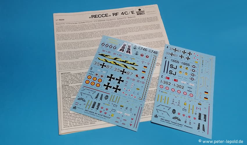 "Recce" RF 4C/E Phantom II McDonnell Douglas RF-4C/RF-4C-18-MC/RF-4E Phantom #9029 aus 1982 (Erste Auflage 1982 als F-4E/F-4F #9027) Neue bzw. geänderte Bauteile sowie neue Decals Maßstab 1:72, 82 Teile