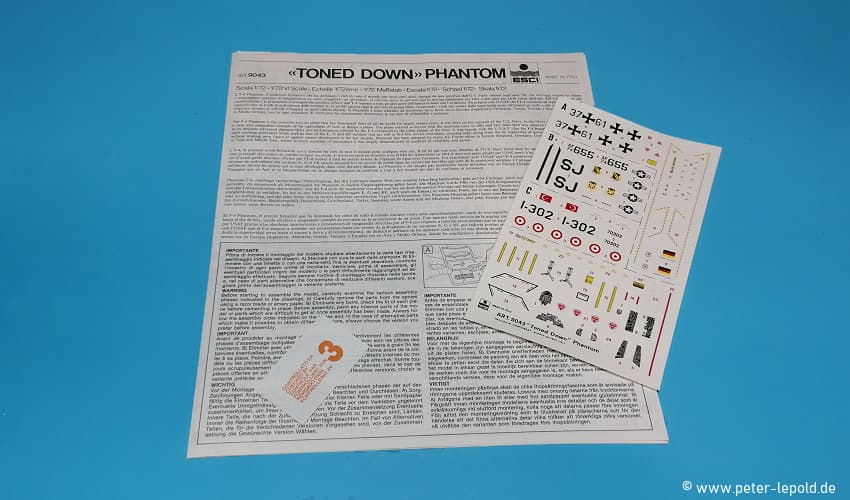 "Toned Down" Phantom McDonnell Douglas F-4F Phantom #9043 aus 1985 (Erste Auflage 1982 als F-4E/F-4F #9027) Neue bzw. geänderte Bauteile sowie neue Decals Maßstab 1:72, 92 Teile