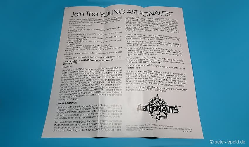 Diese Ausgabe beinhaltet zudem ein NASA Poster, zwei verschiedene Young Astronaut Patches, zwei Anforderungskarten für die Patches sowie für das Young Astronaut Program Membership.