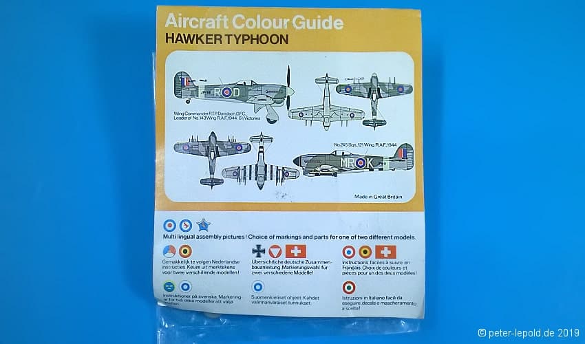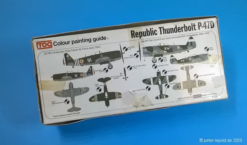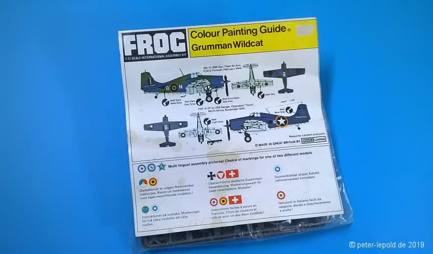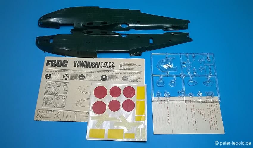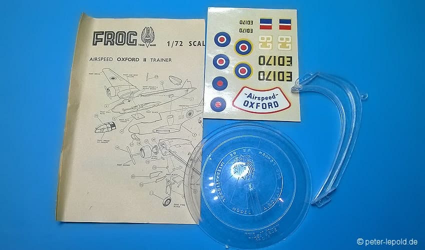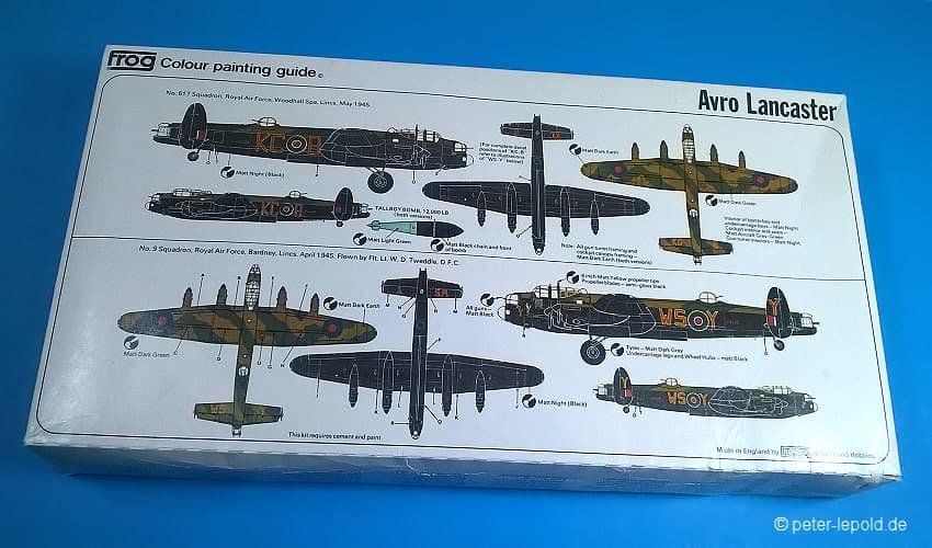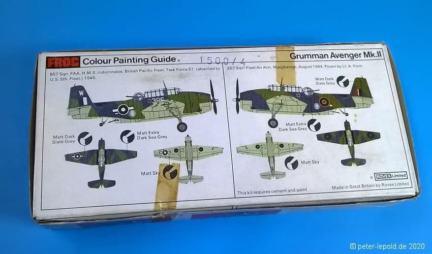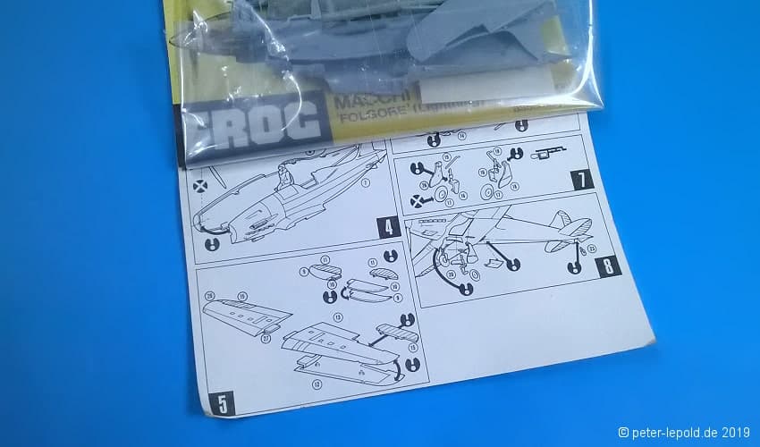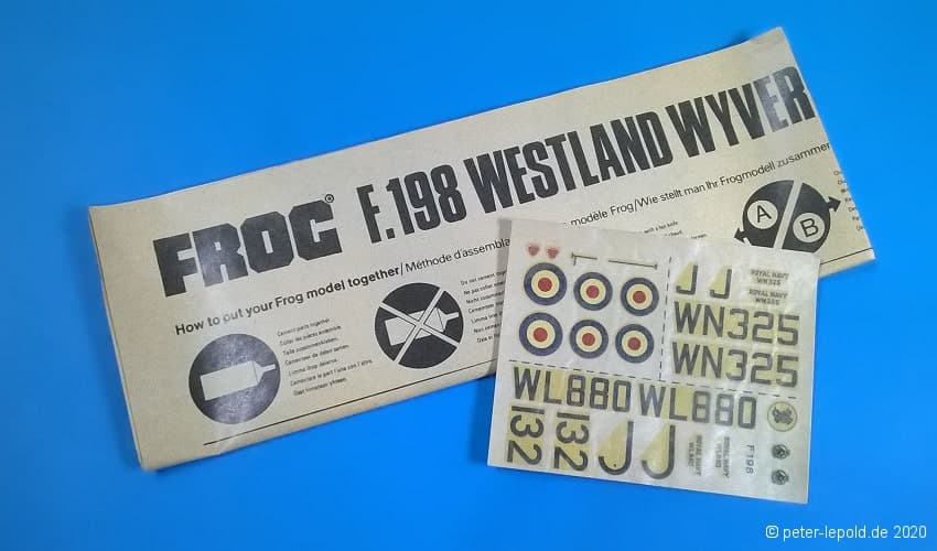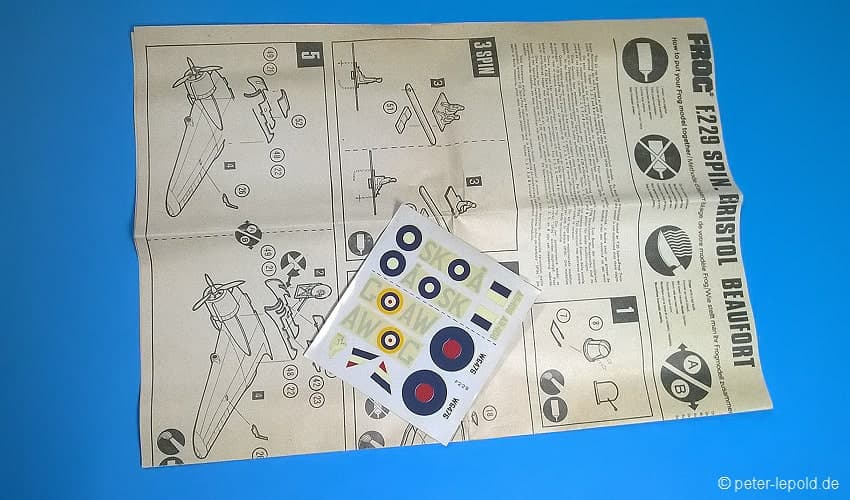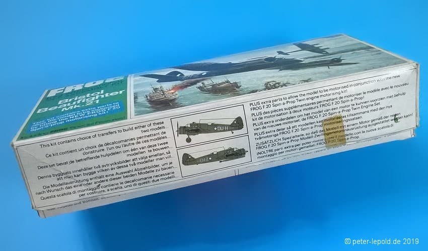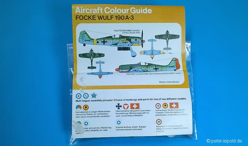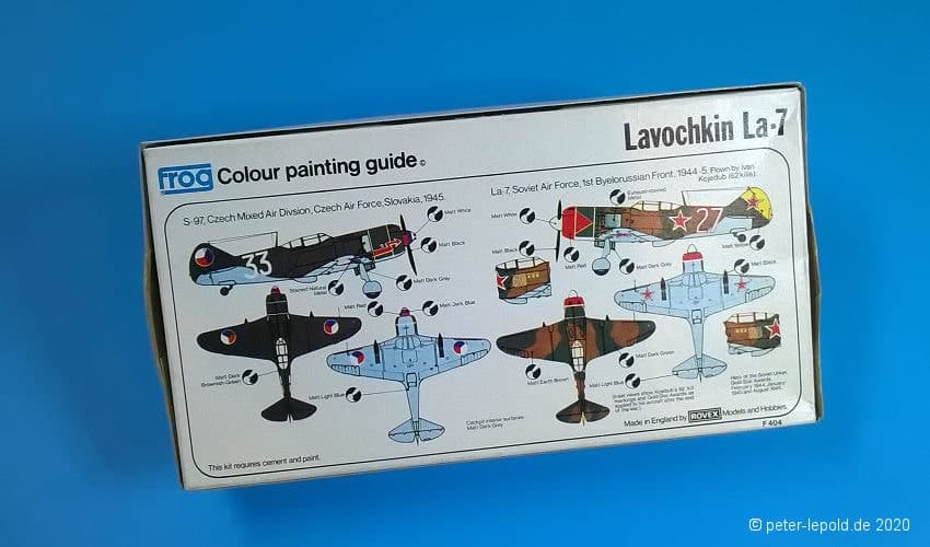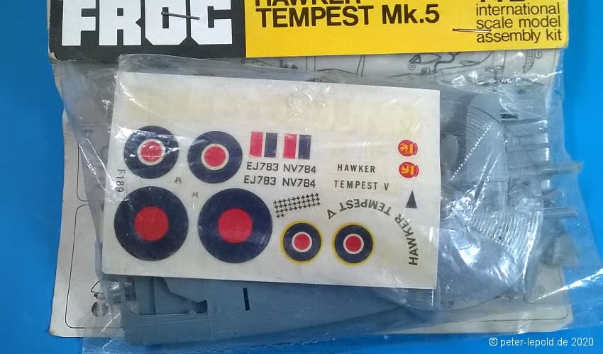 Dies sind KEINE realen FROG Verpackungen. Da das Modell wie erwähnt nicht mehr von FROG produziert wurde und es aus sowjetischer Produktion keine vernünftige Verpackung gibt, habe ich mir die Verpackungen (Schachteltyp H1 und Plastikbeutel Typ J2) sowie die ''FROG'' Baupläne selbst erstellt. Entsprechende Decals stammen vom Zubehörmarkt.