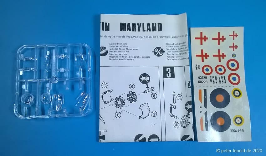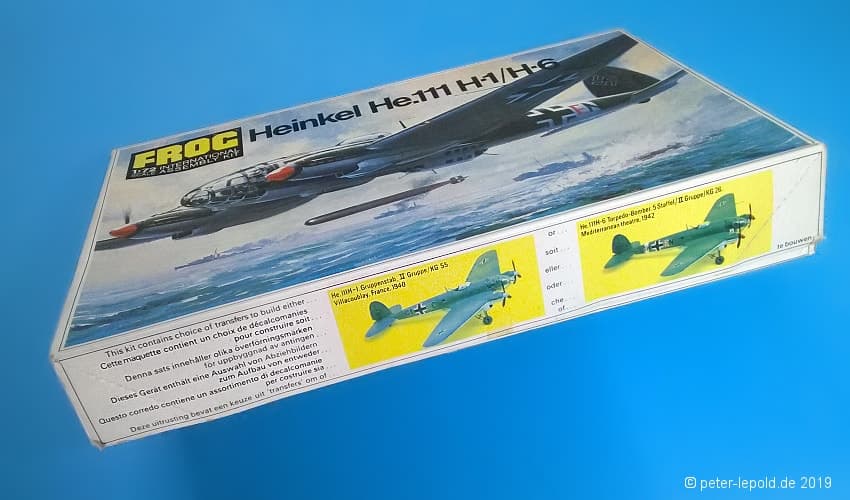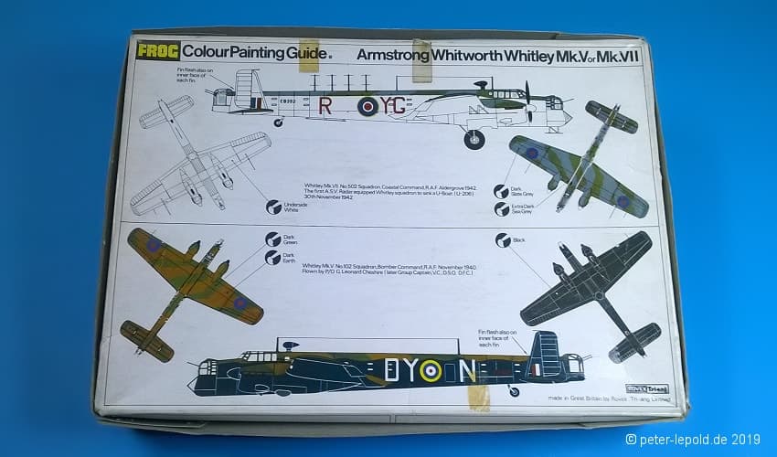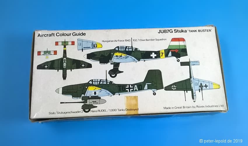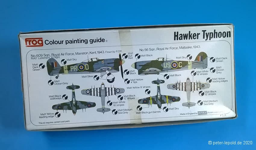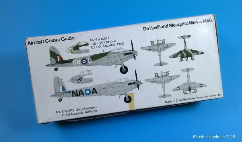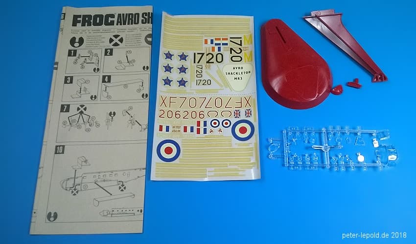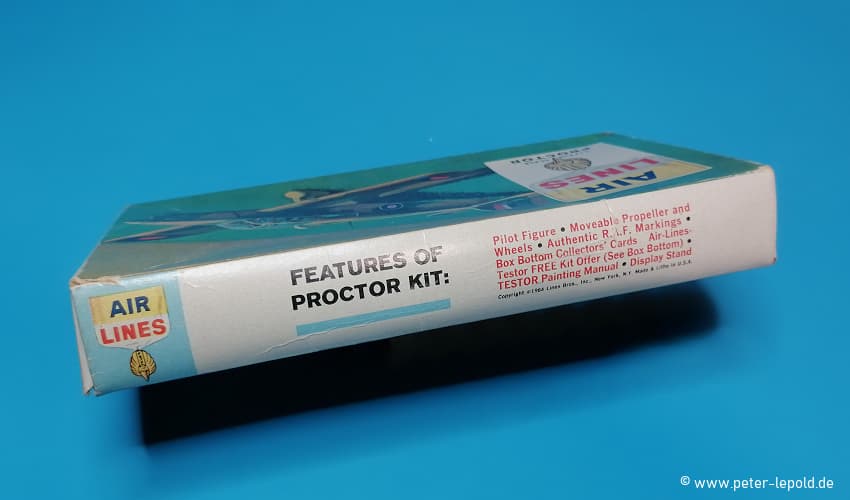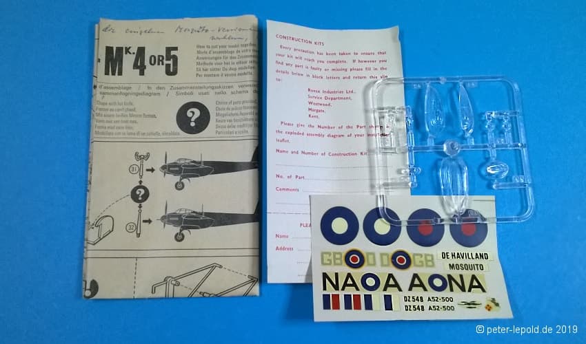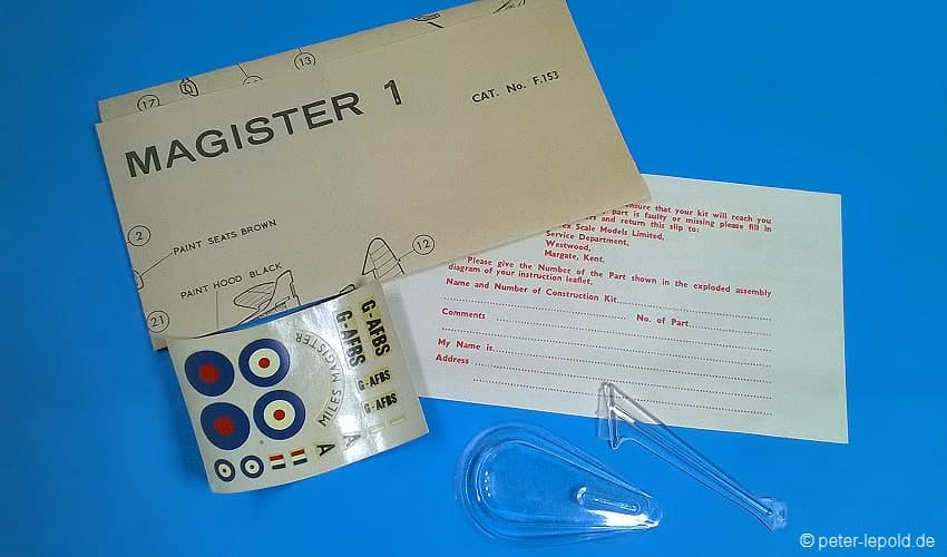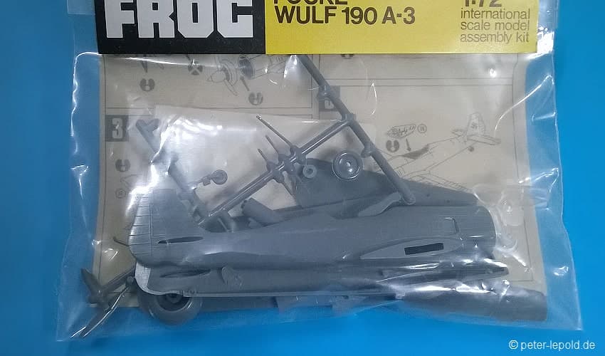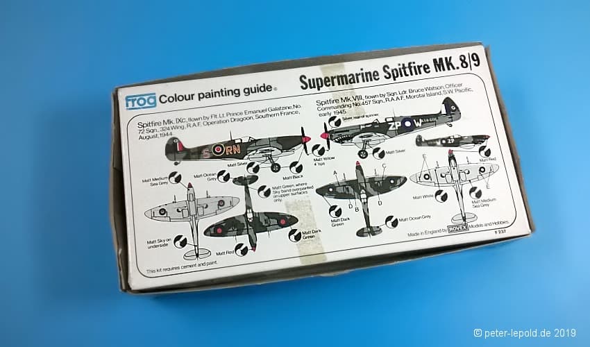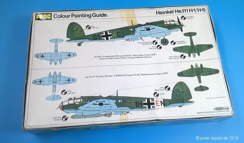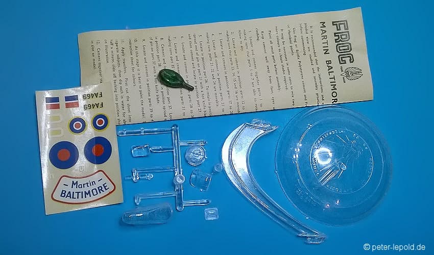 Dies sind KEINE realen FROG Verpackungen. Da das Modell wie erwähnt nicht mehr von FROG produziert wurde und es aus sowjetischer Produktion keine vernünftige Verpackung gibt, habe ich mir die Verpackungen (Schachteltyp H1 und Plastikbeutel Typ J2) sowie die ''FROG'' Baupläne selbst erstellt. Entsprechende Decals stammen vom Zubehörmarkt.