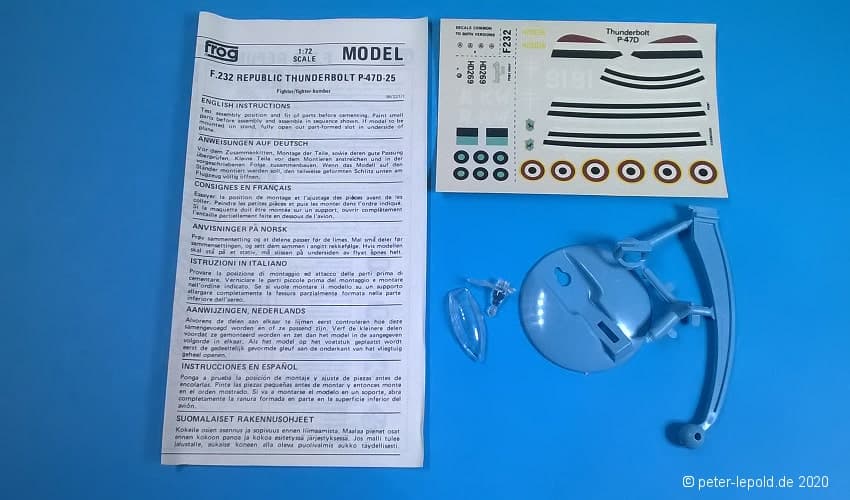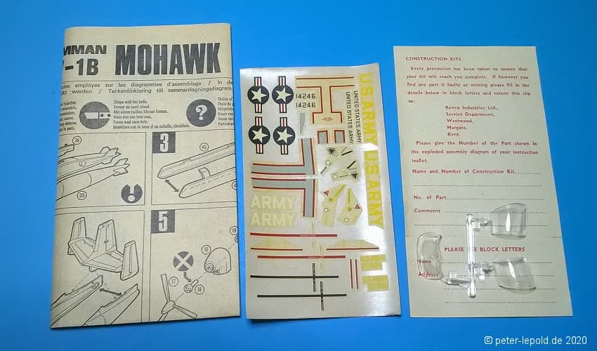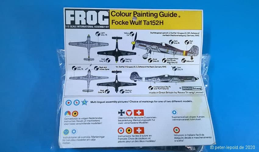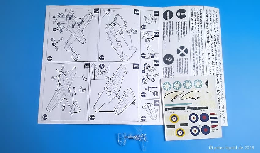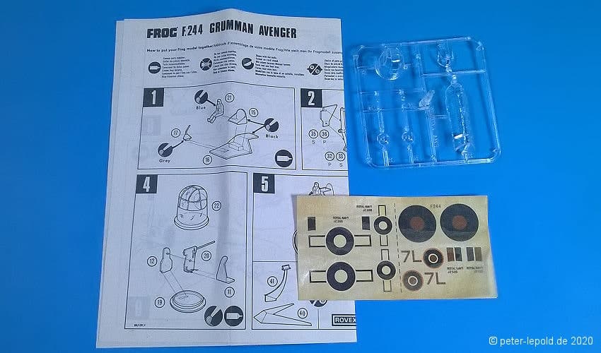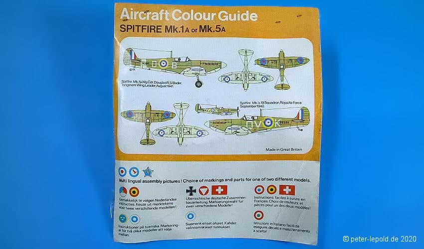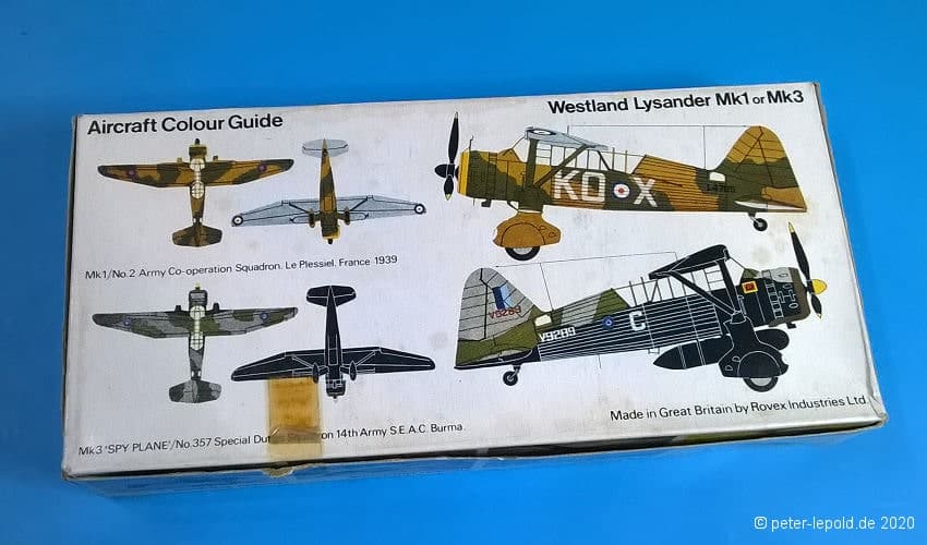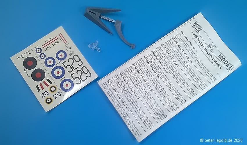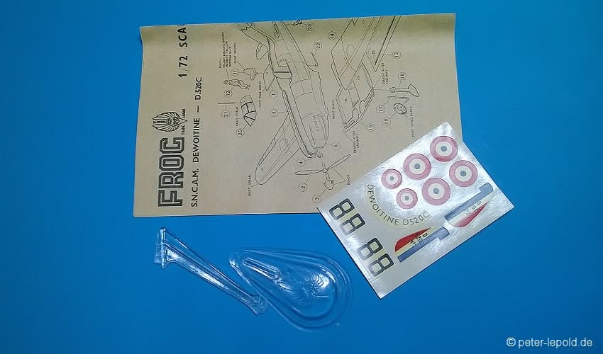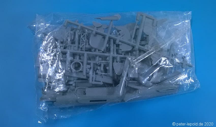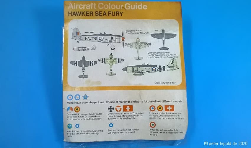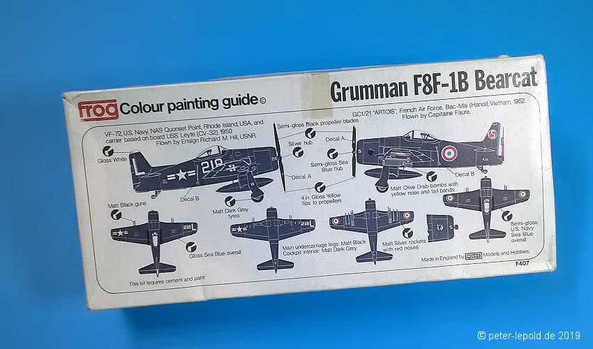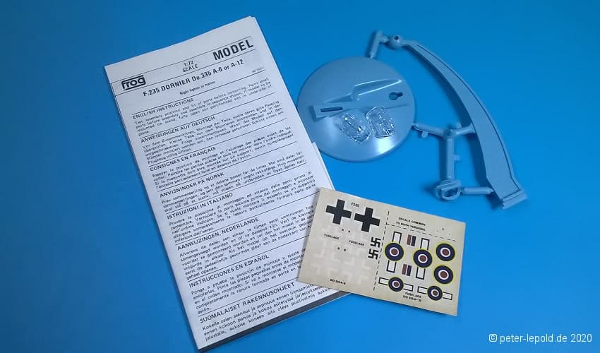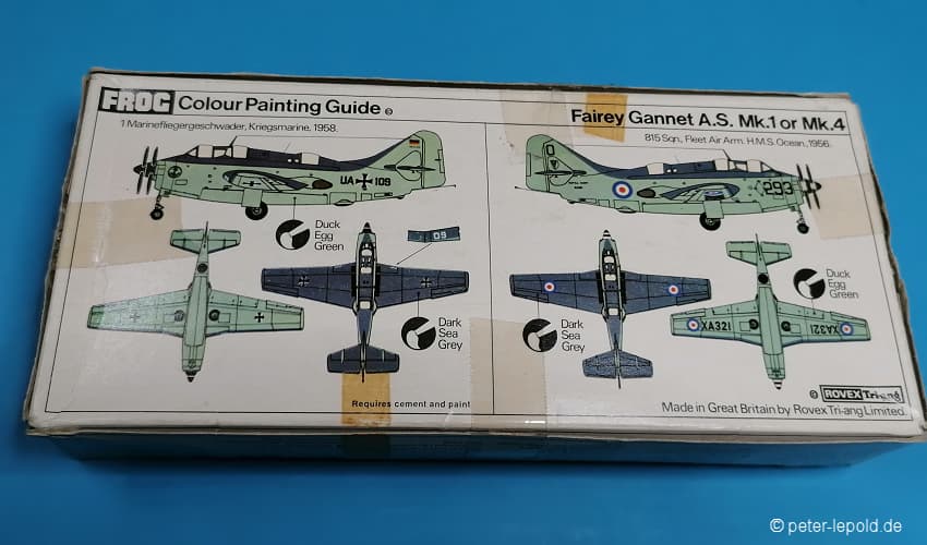 Dies sind KEINE realen FROG Verpackungen. Da das Modell wie erwähnt nicht mehr von FROG produziert wurde und es aus sowjetischer Produktion keine vernünftige Verpackung gibt, habe ich mir die Verpackungen (Schachteltyp H1 und Plastikbeutel Typ J2) sowie die ''FROG'' Baupläne selbst erstellt. Entsprechende Decals stammen vom Zubehörmarkt.