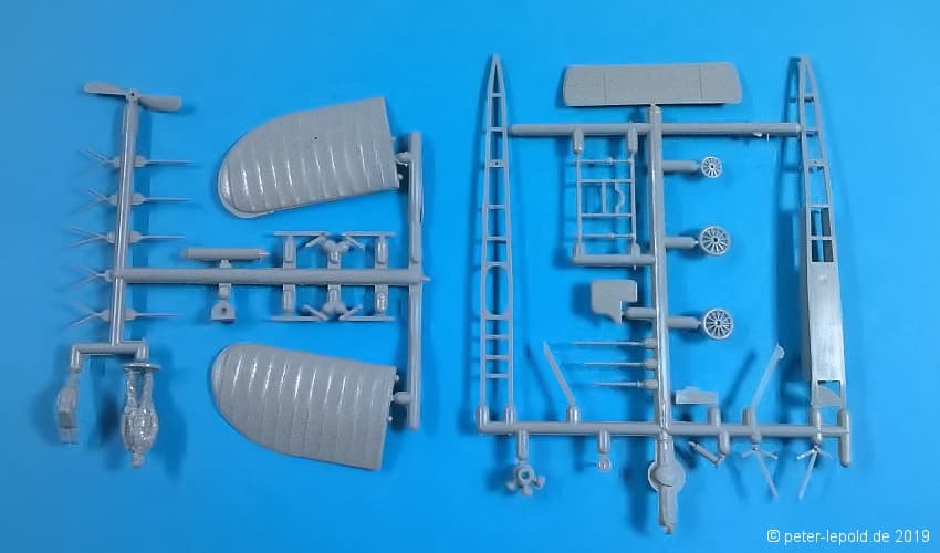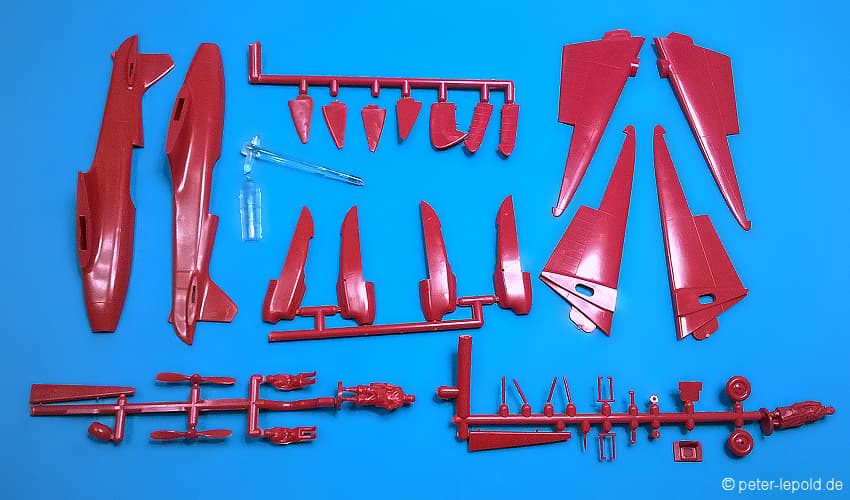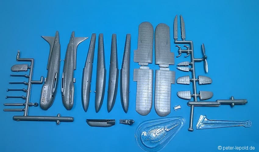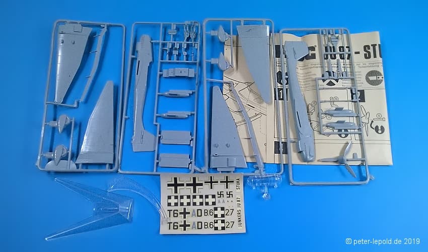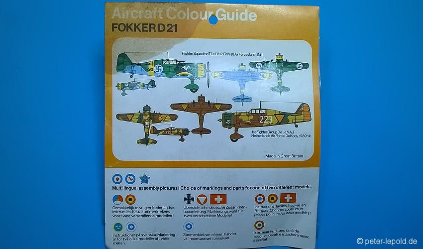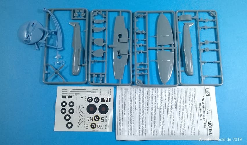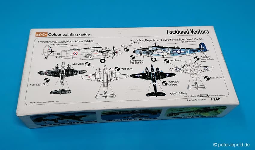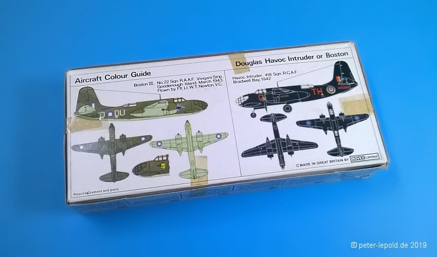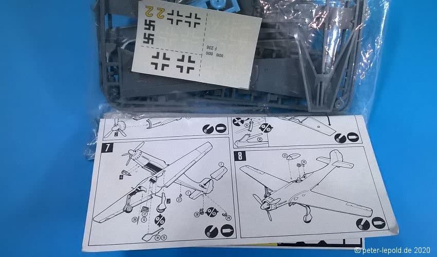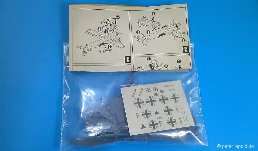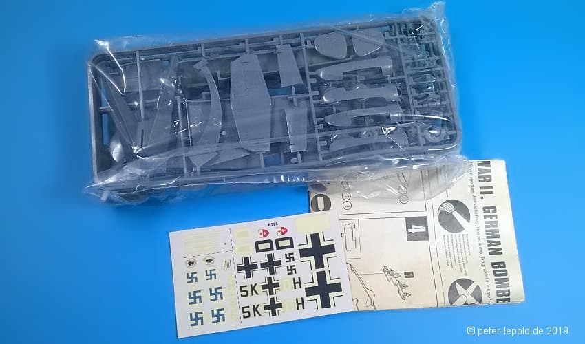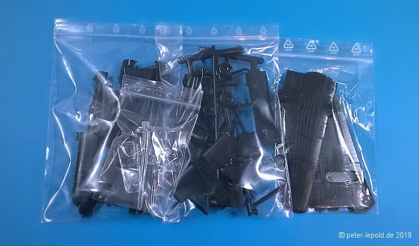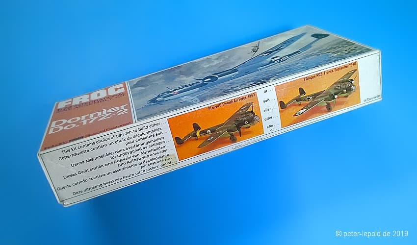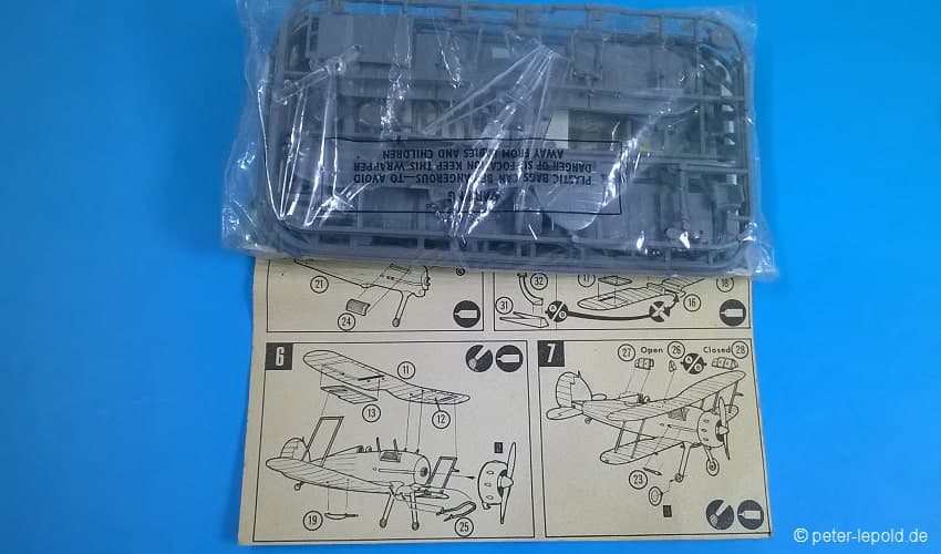 Dies sind KEINE realen FROG Verpackungen. Da das Modell wie erwähnt nicht mehr von FROG produziert wurde und es aus sowjetischer Produktion keine vernünftige Verpackung gibt, habe ich mir die Verpackungen (Schachteltyp H1 und Plastikbeutel Typ J2) sowie die ''FROG'' Baupläne selbst erstellt. Entsprechende Decals stammen vom Zubehörmarkt.