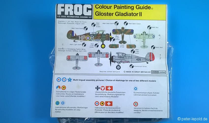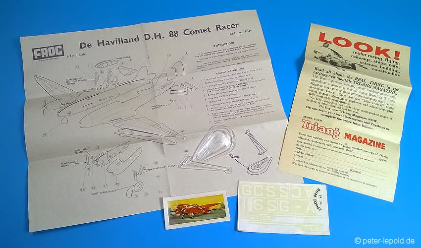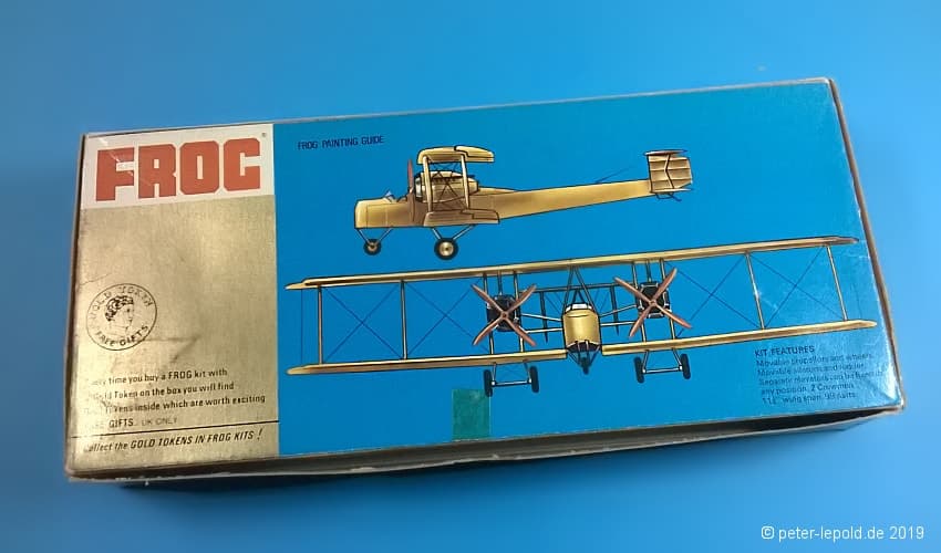 Dies ist KEINE reale FROG Verpackung. Da das Modell wie erwähnt nicht mehr von FROG produziert wurde, habe ich mir die Verpackung (Plastikbeutel Typ J2) sowie den ''FROG'' Bauplan selbst erstellt wie es hätte aussehen können, wenn FROG das Modell noch produziert und vertrieben hätte.