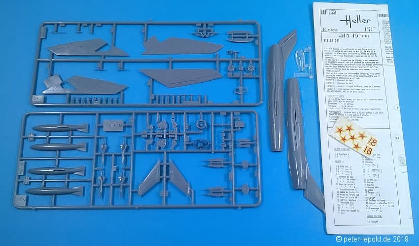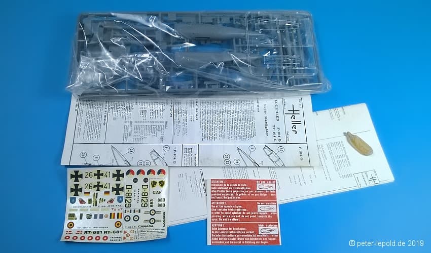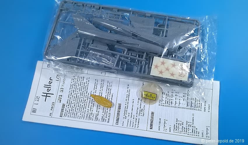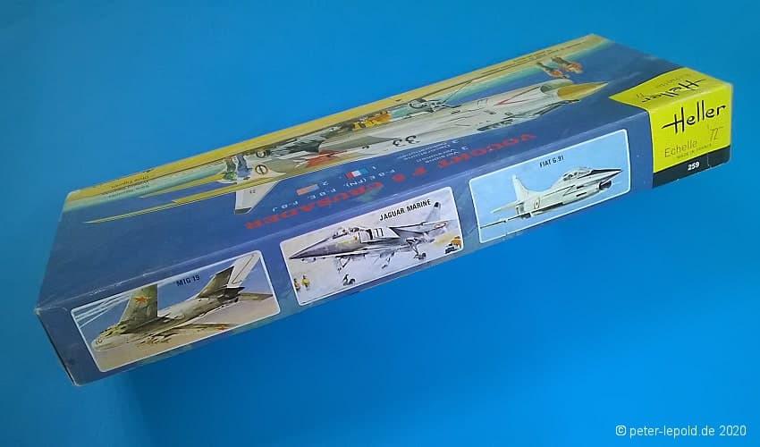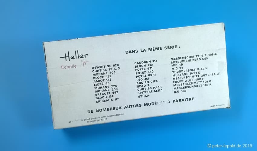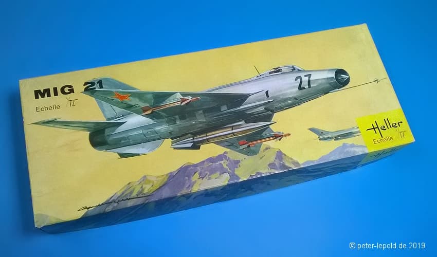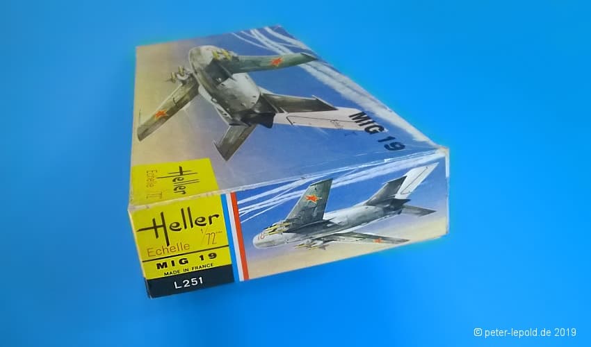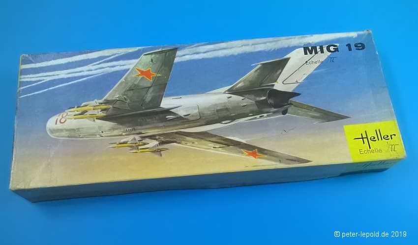 Zum Modell: Heller vereinbarte Ende der 1960er Jahre einen Deal mit dem russischen Hersteller OGONJEK (Огонек), dass Heller die Werkzeuge herstellte, sie 5 Jahre lang nutzte und sie dann an die UdSSR weitergab. Dazu gehörten die Flugzeugmodelle MIG 19 und MIG 21 sowie die Schiffsmodelle Occident, Brigantine, Pourquoi-Pas, Croiseur Aurora, Cuirassé Potemkine und Eisbrecher Lenine. Allerdings wurde bislang kein MiG-19 und/oder MiG-21 Modell in Schachteln aus (ex-)sowjetischer Produktion gesehen.