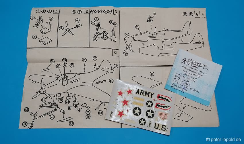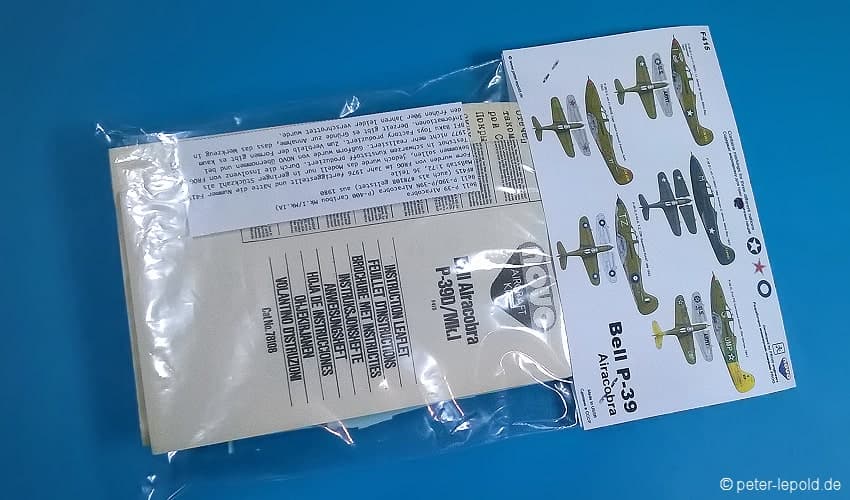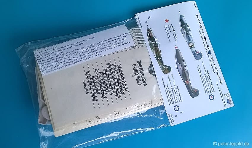 So waren damals und sind teilweise heute noch die P-39 Airacobra Bausätze erhältlich, lediglich in grässliche und mit der Zeit sich selbst auflösende Zellophantüten verpackt und fast immer ohne Decals.