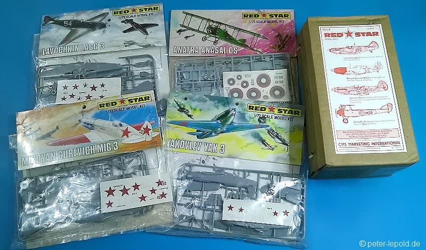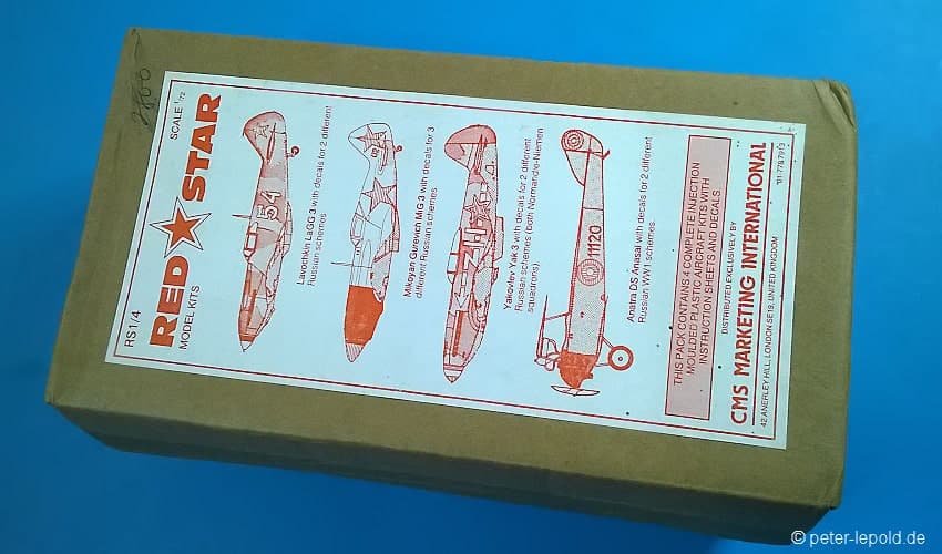 Of the 169 FROG moulds completed from 1955 to 1977, only six are believed still to remain in Great Britain. Two of these (the Dennis Ambulance and Firefly Dinghy moulds) are with Hornby Hobbies and the other four with Red Star. These four are the so-called "Russian" moulds completed by Rovex specifically for use in the USSR, but in the end never sent there. After several attempts to sell them to established kit producers, the NOVO receivers finally found a buyer in the Red Star company; a small firm with a rather unusual story behind it. The story of Red Star goes back to 1982 when Jim Chapman - the subsequent founder of Red Star - took a holiday in the Soviet Union. Before departure he made enquiries to discover where he might be able to purchase kits for his own use. Before he left he heard from the relevant Soviet authority, who also advised him that the possibility of importing a range of ex-Frog kits to the West was under active consideration. On his return home, he contacted the Soviet import agency with a view to offer advice on the proposed import project. The initial advice took the form of a review of the alternative kits available. This led to further meetings where it became obvious that the agents had rather vague ideas on the choice of suitable kit subjects and not much practical knowledge on matters such as packaging and decals (at one point a peel-off/stick-on type of markings was seriously considered, and some test sheets on white backing paper were printed!). The question of finding a suitable distributor was also pending, but in the end the agents choose Capital Models Supply (CMS)...[See NOVOEXPORT for more details of this operation]... During his enquiries for the CMS import project, Jim discovered the existence of the four moulds later acquired by Red Star. Initially he was asked to cost a scheme to acquire and market these moulds as an ancillary project to the main import scheme. Although his report showed this to be feasible, the Soviets did not wish to proceed until the main scheme was well under way. As by this time he had invested a considerable amount of effort in the project, Jim Chapman was however reluctant to see the moulds disappear to Eastern Europe. He therefore put forward a proposal to a number of people to see if a consortium could be put together to handle the moulds without Soviet involvement. After a number of false starts and changes in the expected participants, a company was arranged to handle the scheme. This was Glenprime Ltd., but the name was soon changed to Red Star Model Kits Ltd. By July 1983 they were ready to go into production and on October 31st CMS - who had been appointed sole distributor - took delivery of the first 3,000 of the 7.000 four-kit sets ordered by them. In the event, only about 2.000 of these were sold as sets, the balance being repacked singly in polythene bags with header cards, mainly to meet US orders received by CMS in the spring of 1984. Most sets had a red and white label, but a few of the last ones sold after October 1984 had this replaced by a photocopy.