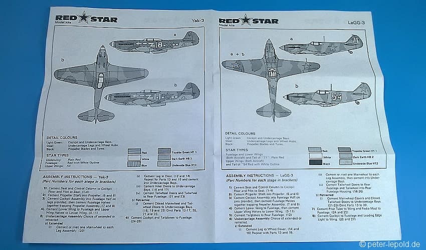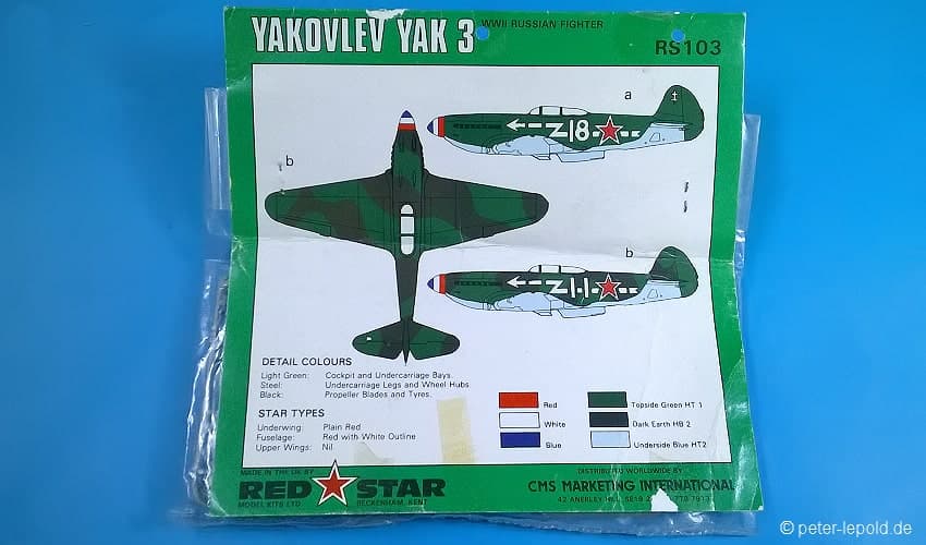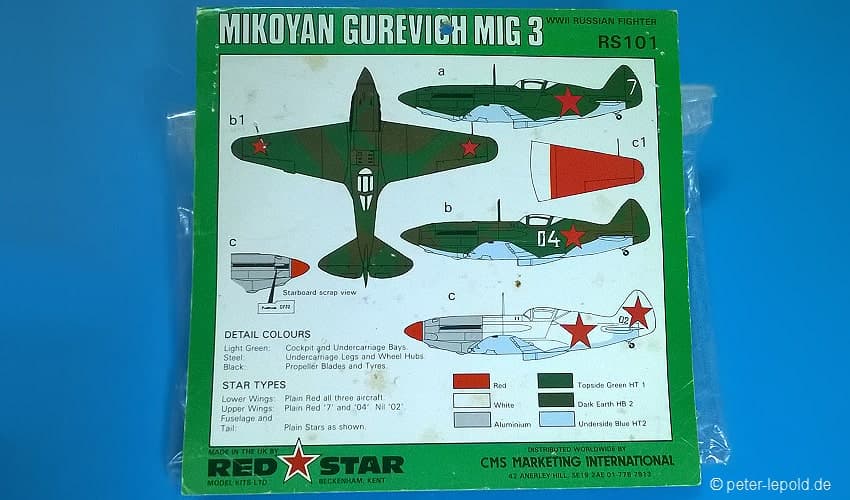 After CMS went into receivership in August 1984, attempts to get the intended backers of CMS' Soviet import scheme to continue were unsuccessful. Jim then put forward various schemes whereby the Soviets could act as their own distributors for at least a limited scheme. When none of these proposals had elicited much of a response by March 1985, Red Star offered to run such a project on behalf of the Soviets and - to ensure that there was no financial risk to the Soviets - offered to surrender Red Star's moulds as payment. This scheme was initially accepted but then the Soviets changed their mind and progress stopped. Other proposals covered an exchange of moulds to enable production to take place in England but this was also turned down. Finally a simple offer to purchase kits for cash was put forward. This was accepted in December 1985 and an initial range of nine kits (all from the DFI factory) was agreed upon. Of these, the Maryland was subsequently dropped as a small mould defect was found. It was hoped that a further sixteen types (including the Sea Venom and Whitley) would follow later. In addition, the Soviets offered delivery of 1,000 Shackletons from existing stocks. But nothing has happened since and Red Star are still waiting for their kits. Apparently the Soviets developed cold feet at the last moment and the future of the deal is somewhat uncertain. It is possible that the recent large exports to Eastern bloc countries (to pay for food imports to the nuclear stricken Ukraine) has taken up much of the available capacity. There are two hopeful signs, however. The first is the Soviets' undeniable interest in acquiring the Red Star moulds. The second is the recent changes in Soviet hierarchy. Fresh approaches have recently been made so there is still hope. In anticipation of the first Soviet deliveries, Red Star commissioned new artwork for the Skua, Vengeance and Ventura. In addition, new decals were designed for the Skua and Ventura. This work was done by Dick Ward of Modeldecal, who also did the previous Red Star decals. Meanwhile, production of the first four kits was (temporarily) suspended in March 1987. By then, total production was as follows: MiG-3 12,500, LaGG-3 11,500, Anatra 9,500 and Yak-3 8,500 pieces. Mould problems have necessitated a few small adjustments, as can be seen when comparing with samples produced by Rovex. A small batch of review samples was made in translucent white and bulk production in medium grey...