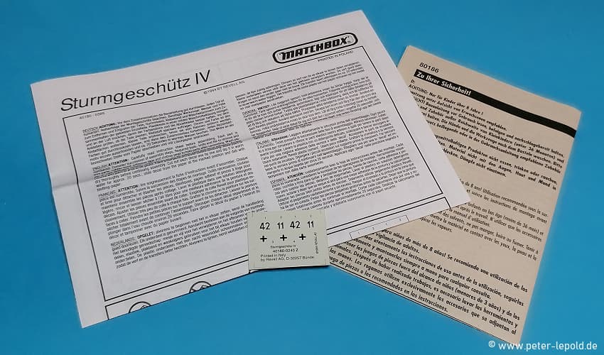 Meine Schachtel ist original in Folie eingeschweißt (und wird auch verschlossen bleiben), daher Bilder vom Inhalt von matchboxkits.org: