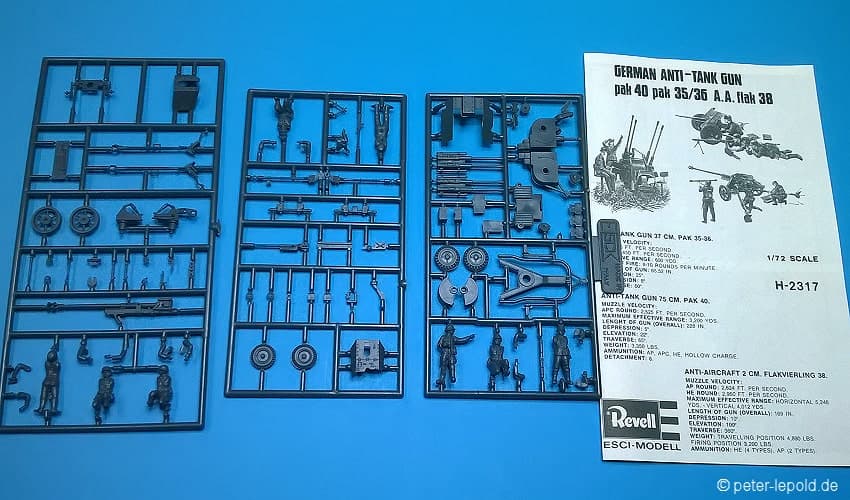 Maßstab 1:72, 88 Teile (PaK 40: 32 Teile, PaK 35/36: 24 Teile, Flak 38: 32 Teile)