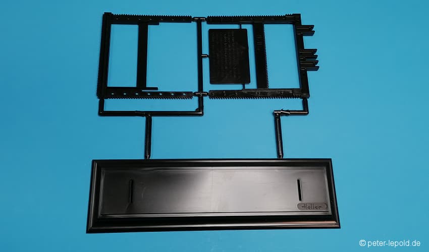 Heller gibt zwei unterschiedliche Maßstäbe an. Auf der Schachteloberseite