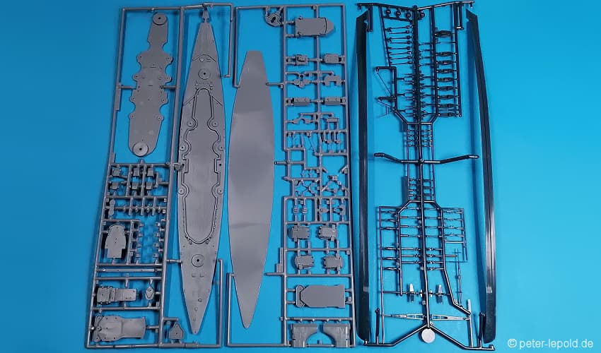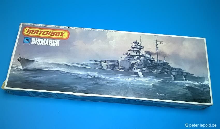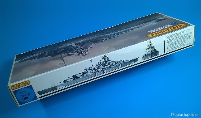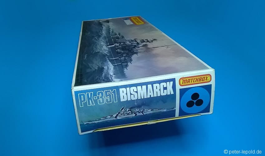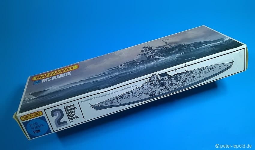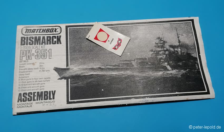 BismarckSchlachtschiff Bismarck (Bismarck-Klasse) #PK-351 von 1980 (Erste Auflage) Blaue Serie, Schachteltyp 3 ohne Sichtfenster Maßstab 1:700, 163 Teile in zwei Farben