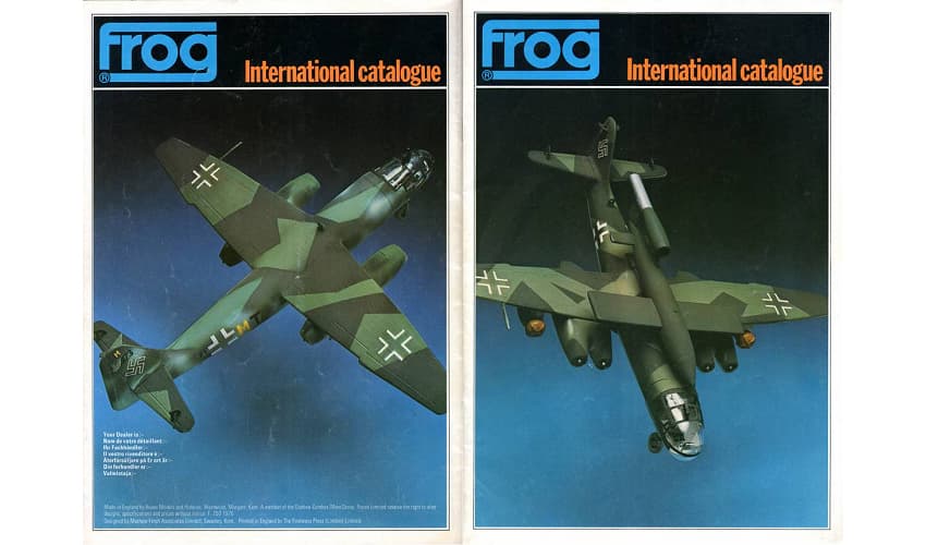 FROG war eine sehr bekannte britische Marke (gegründet 1931 von Charles Wilmot and Joe Mansour) für flugfähige Balsaholz-Modellflugzeuge und maßstabsgetreue Modellbausätze in den 1930er bis 1970er Jahren.