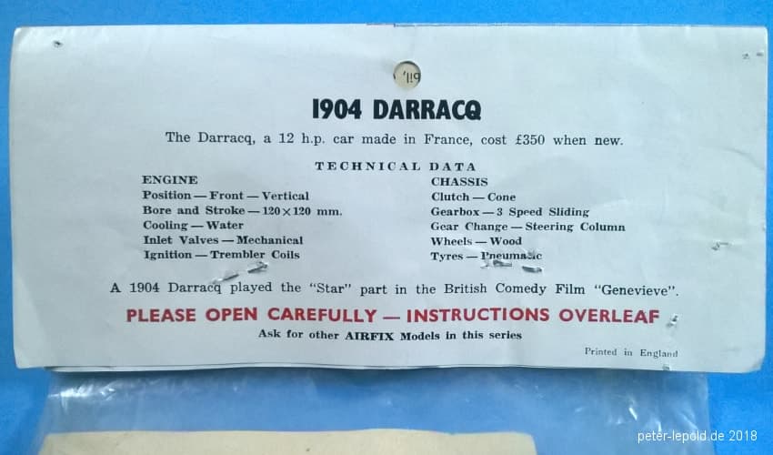 1904 Darracq (Ausgabe 1962 Type 2 Header) 1904 Darracq 12 CV,
